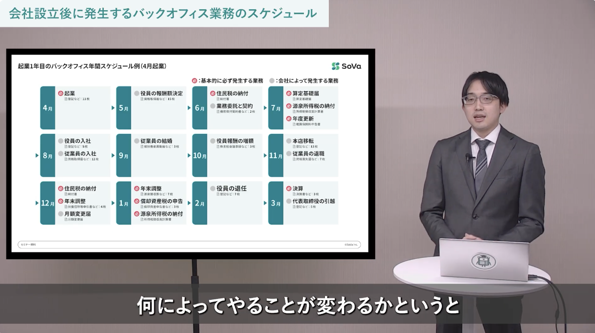 設立直後から時系列で整理し、何をいつ対応すべきかを約10分で解説します。